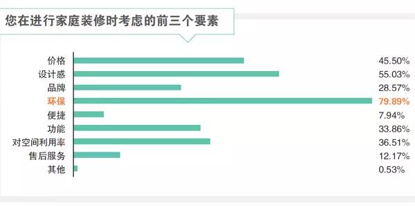 相比之下,價格要素退居到第三位,選擇價格為裝修前三個需考慮要素的受訪者僅占比45.21%,低價對這個正在崛起的消費群體吸引力在下降,另有35%左右的新中產(chǎn)階層將功能和對空間的利用率列入家庭裝修前三個需特別關注的要素中。
