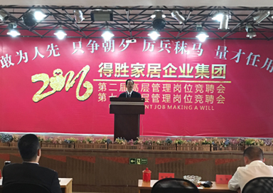2016年10月14日-16日,得勝家居集團(tuán)第二屆高層管理崗位競聘會(huì)暨第七屆中層管理崗位競聘會(huì)隆重舉行。2016年是公司持續(xù)深化改革的一年,又是進(jìn)一步開拓進(jìn)取的一年,在得勝家居集團(tuán)“1+100”運(yùn)營戰(zhàn)略開局之年舉辦此次競聘會(huì),具有重大且深遠(yuǎn)的現(xiàn)實(shí)意義,不僅為得勝家居集團(tuán)的發(fā)展挖掘大量人才資源,同時(shí)也是一次員工交流學(xué)習(xí)的重要機(jī)會(huì)。此次競聘會(huì)在集團(tuán)公司總部6樓多功能會(huì)議室舉行,集團(tuán)公司董事長張樹榮、董事長助理兼運(yùn)營中心招商部總監(jiān)張程、綜合辦主任李紹忠、培訓(xùn)中心主任金煒杰、運(yùn)營中心營銷部總監(jiān)楊軍、管控中心總監(jiān)韓沂、管控中心副總監(jiān)李良洪、管控中心副總監(jiān)陳瑞、滇西大區(qū)總經(jīng)理趙傳國、滇北大區(qū)總經(jīng)理張培川、滇南大區(qū)總經(jīng)理石建坤,相關(guān)領(lǐng)導(dǎo)擔(dān)任競聘會(huì)評(píng)委。集團(tuán)各部門全體員工、各區(qū)域所涉連鎖商場主管級(jí)別含以上人員,參加本次競聘會(huì)。
